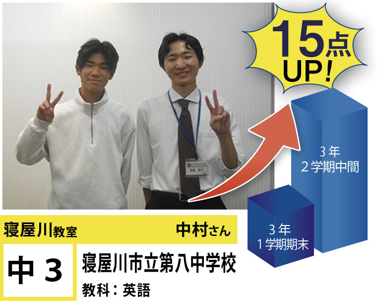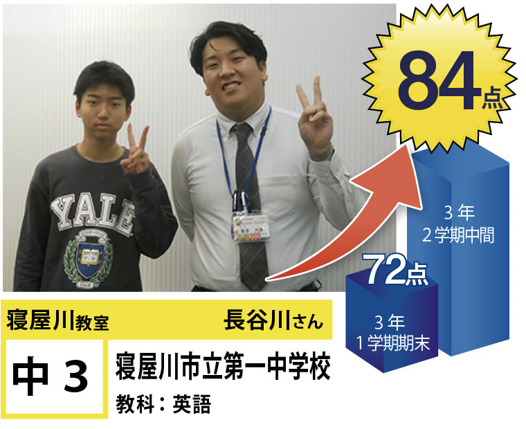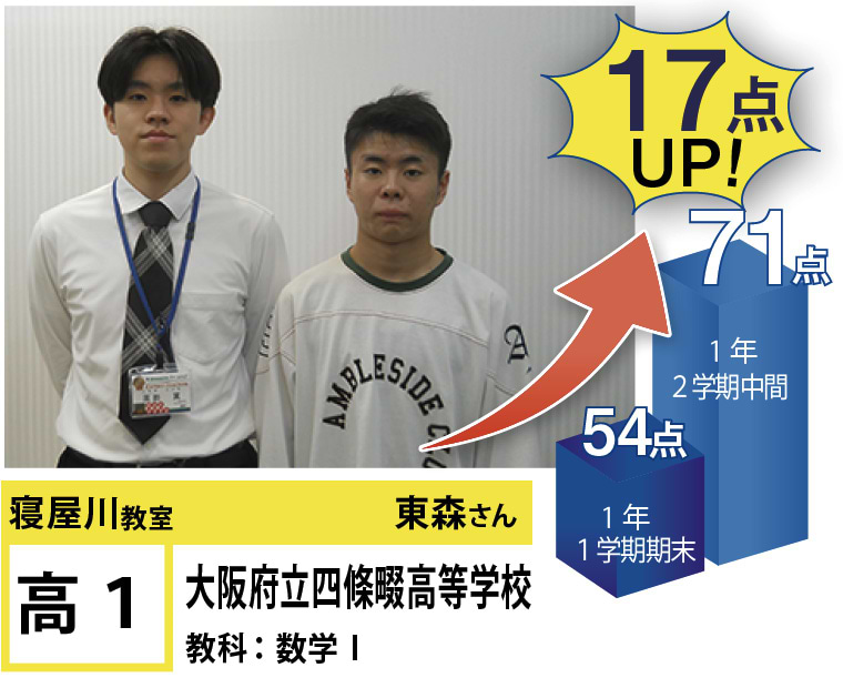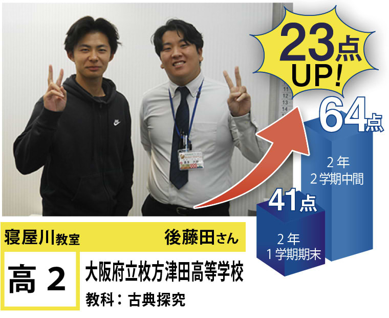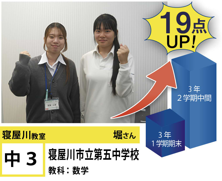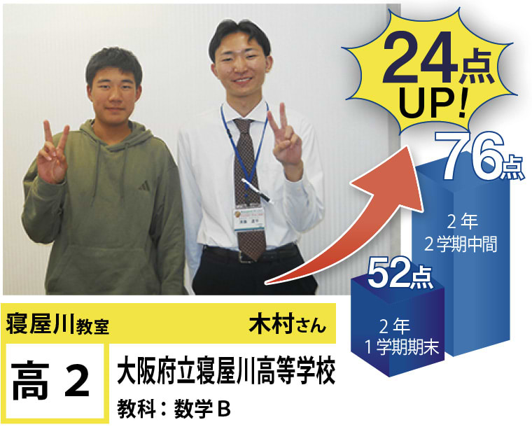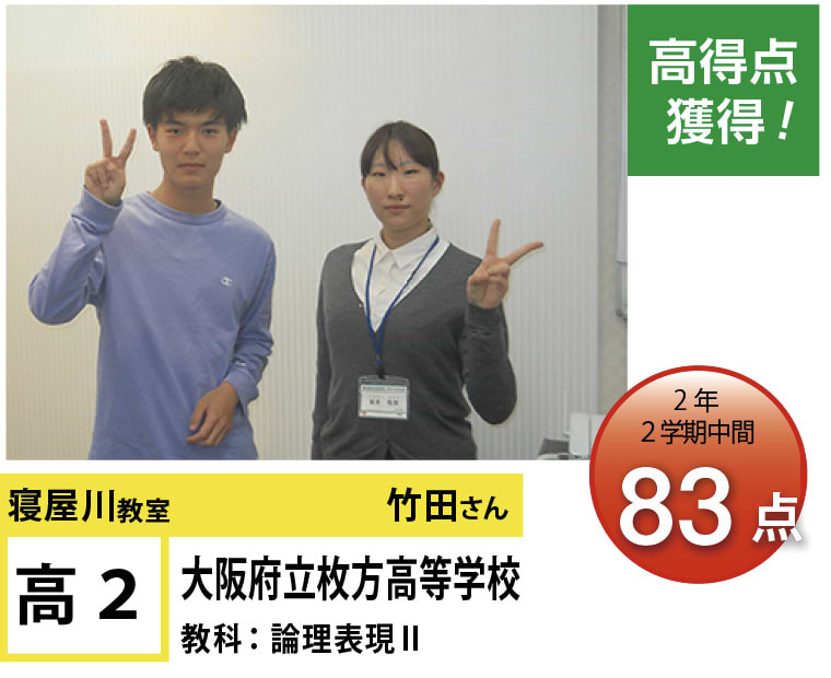 | 在籍生徒 | 小学校・・・中央小学校、木田小学校など 中学校・・・第一中学校、第二中学校、第八中学校、第九中学校、中木田中学校、大阪国際中学校など 高校・・・寝屋川高校、四條畷高校、枚方高校、いちりつ高校、常翔啓光学園高校、東海大学付属大阪仰星高校など |