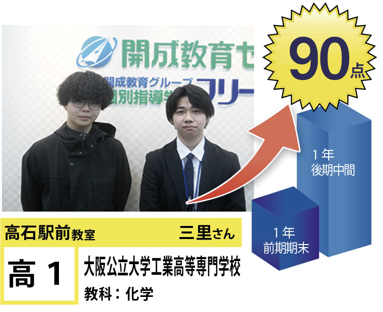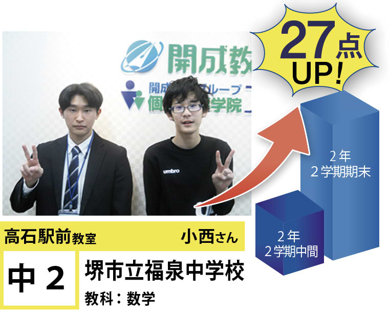 | 在籍生徒 | 小学校・・・高石小学校、高陽小学校、条東小学校、浜寺昭和小学校など 中学校・・・高石中学校、高南中学校、取石中学校、小津中学校、帝塚山学院中学校、羽衣学園中学校など 高校・・・泉陽高等学校、今宮高等学校、鳳高等学校、高石高等学校、羽衣学園高等学校、賢明学院高等学校など |