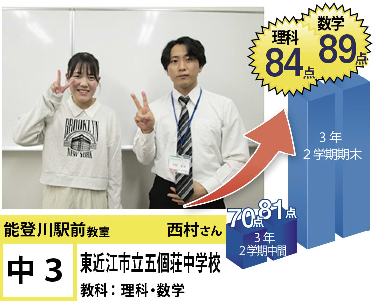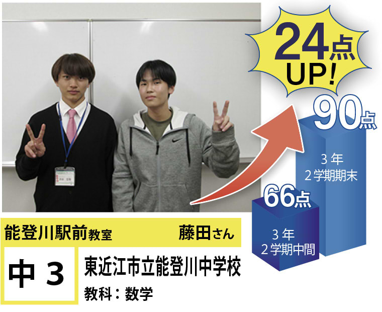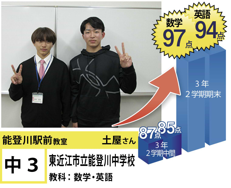 | 在籍生徒 | 小学校・・・能登川東小学校、能登川南小学校、安土小学校など 中学校・・・能登川中学校、五個荘中学校、稲枝中学校、安土中学校など 高校・・・八日市高校、米原高校、河瀬高校、八幡高校、翔西館高校、能登川高校など |