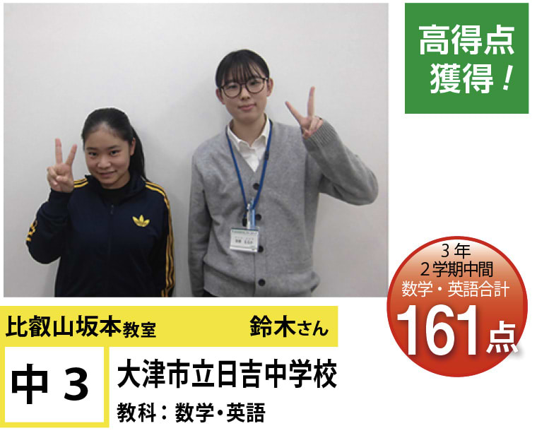 苦手分野の克服、受験指導、学習方法など、今後の学習計画などでご相談・ご要望のある方がいらっしゃいましたら、遠慮なく比叡山坂本教室までお問い合わせください。効率のよい学習を行うことで目標達成は実現します!一緒に頑張りましょう!