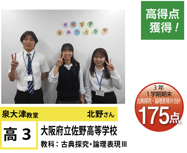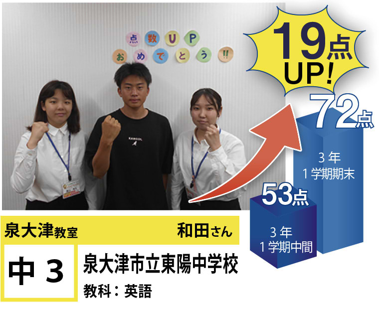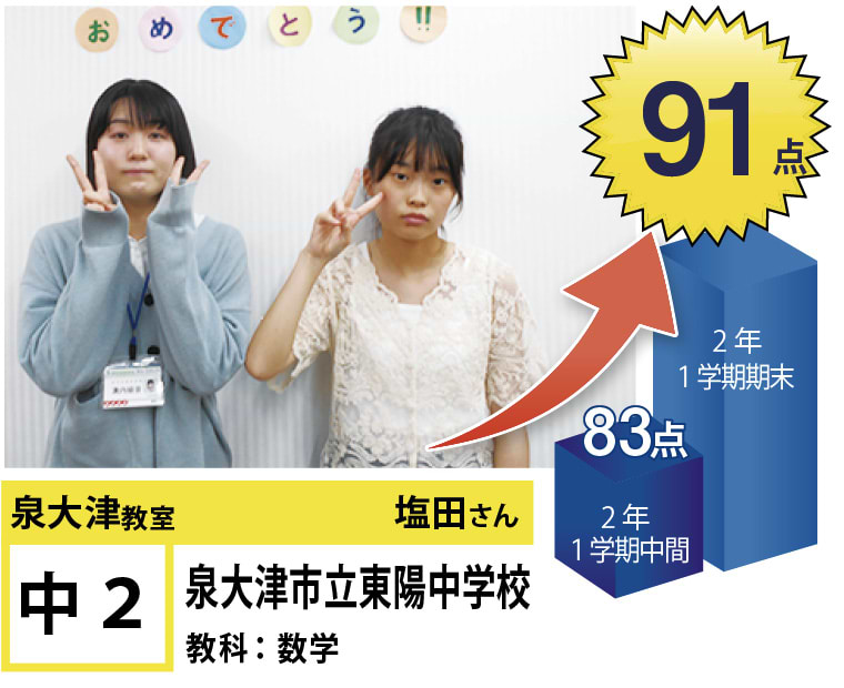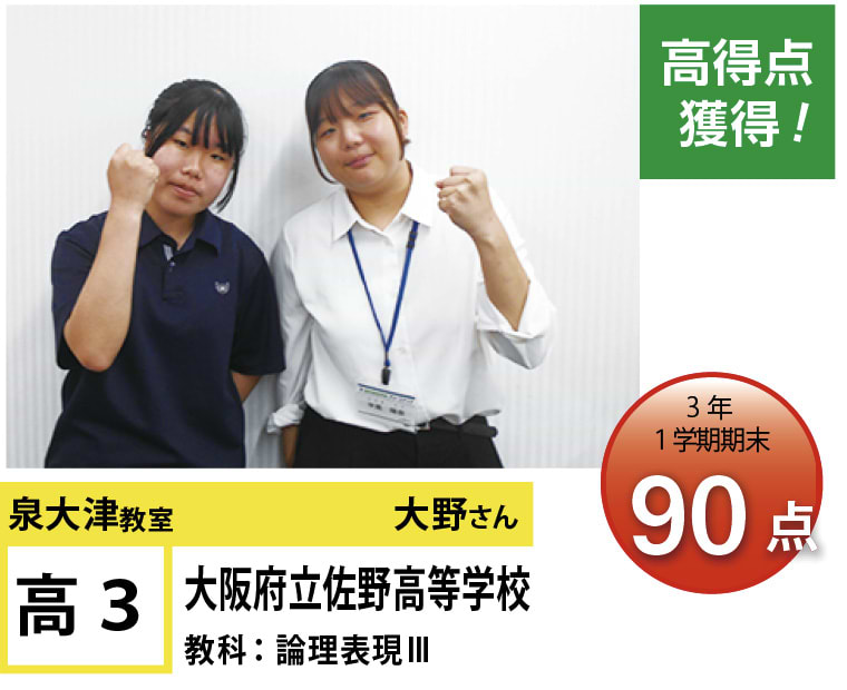 | 在籍生徒 | 小学校・・・旭小学校、条東小学校、浜小学校など 中学校・・・誠風中学校、東陽中学校、忠岡中学校、羽衣学園中学校、帝塚山学院泉ヶ丘中学校など 高校・・・泉陽高等学校、鳳高等学校、和泉高等学校、浪速高等学校、賢明高等学校、大阪教育大学付属高等学校平野校舎など |
