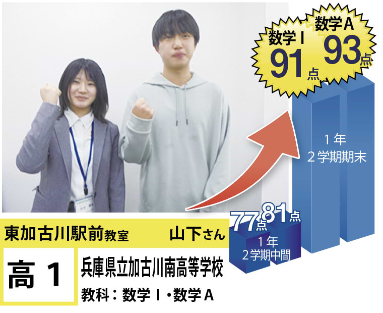 東加古川駅前教室には、「受験を見据えて頑張りたい」「成績をもっと伸ばしたい」という思いを持つ生徒さんが多く通っています。国公立大学や関関同立をはじめとする合格実績を活かしながら、教室では、生徒それぞれの目標や状況に応じて、学習の進め方や苦手分野の整理など、“今やるべきこと”を明確にし、効率よく取り組めるようにしています。