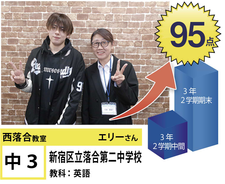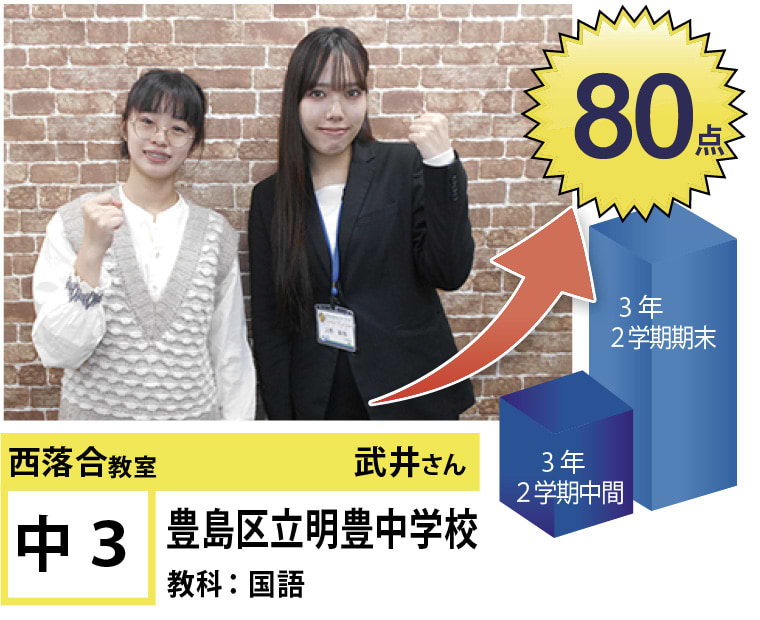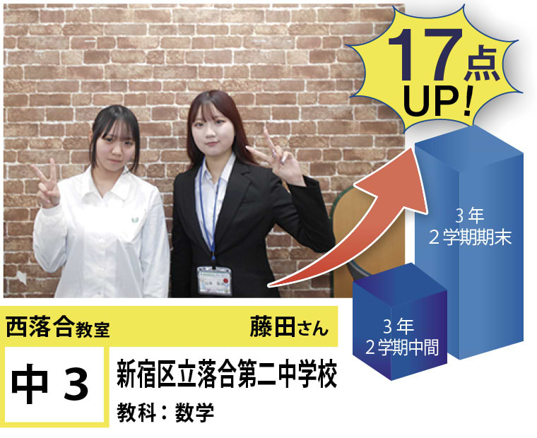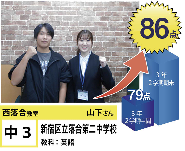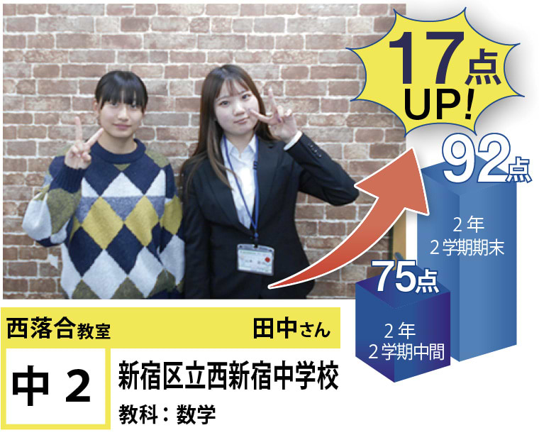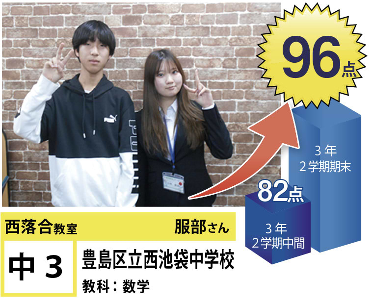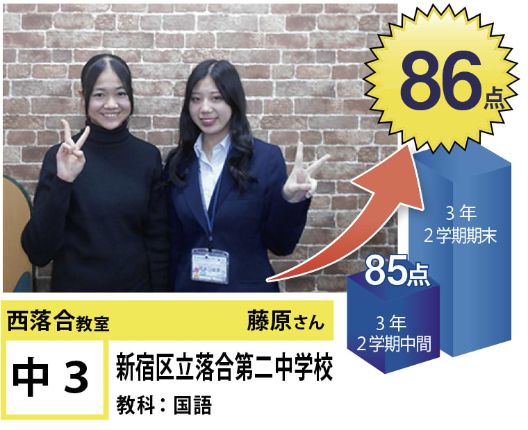 | 在籍生徒 | 小学校・・・落合第三小学校、落合第六小学校、落合第一小学校、椎名町小学校、江原小学校 など 中学校・・・落合第二中学校、明豊中学校、西池袋中学校、宝仙学園中学校 など 高校・・・新宿高校、戸山高校、北園高校、豊島学院高校、日本大学豊山高校、城北高校 など |