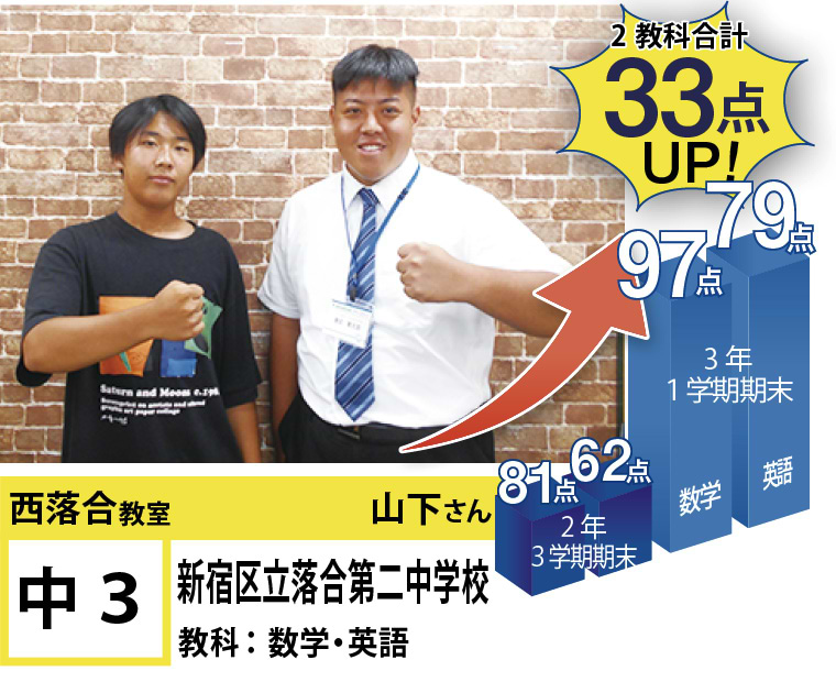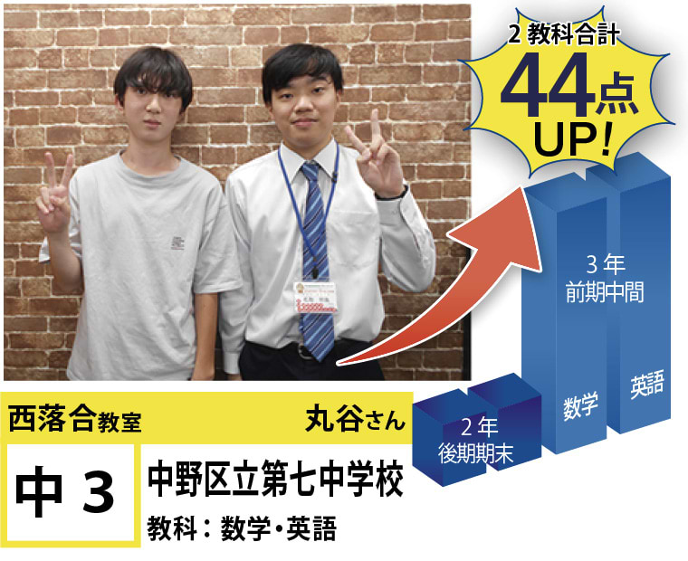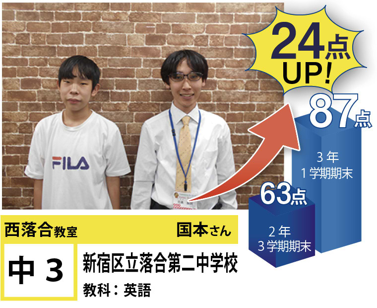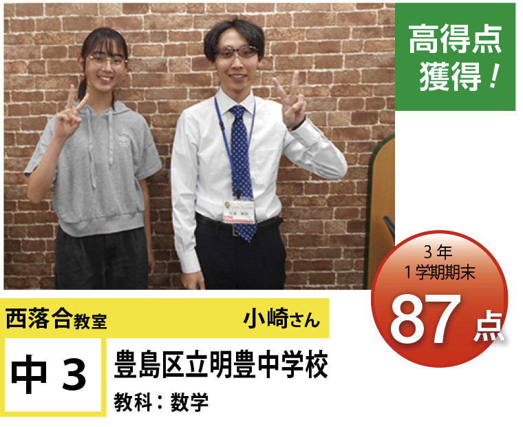 | 在籍生徒 | 小学校・・・落合第三小学校、落合第六小学校、落合第一小学校、椎名町小学校、江原小学校 など 中学校・・・落合第二中学校、明豊中学校、西池袋中学校、宝仙学園中学校 など 高校・・・新宿高校、戸山高校、北園高校、豊島学院高校、日本大学豊山高校、城北高校 など |
