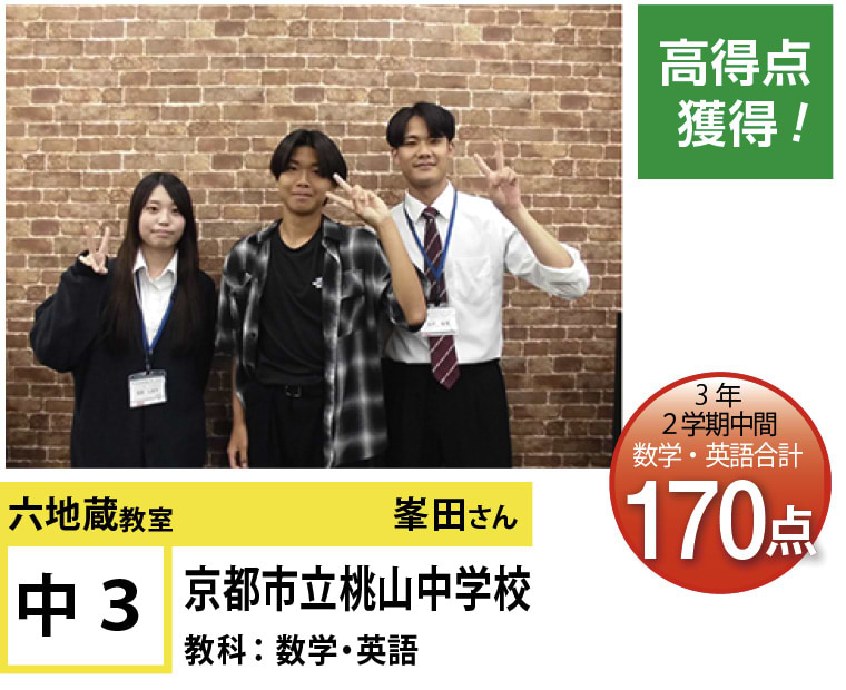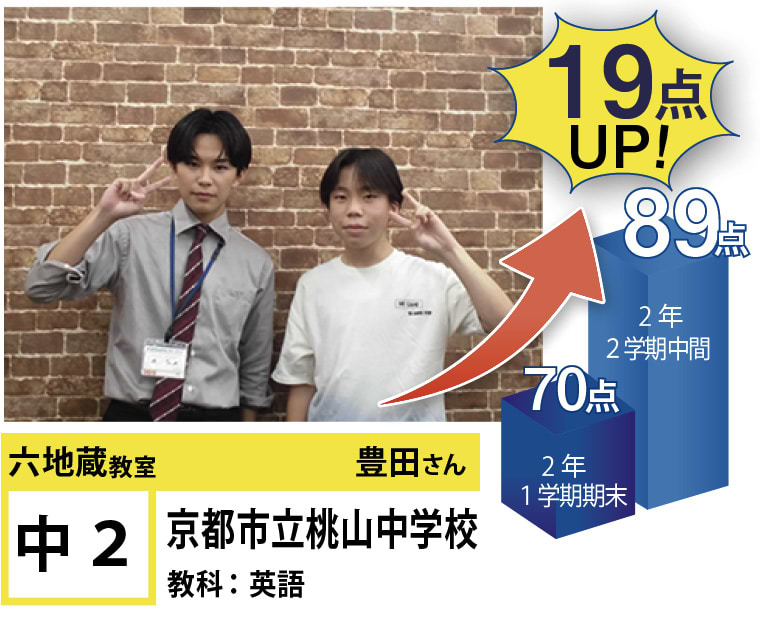 | 在籍生徒 | 小学校・・・御蔵山小学校、桃山東小学校、笠取第二小学校、木幡小学校など 中学校・・・木幡中学校、桃山中学校、栗陵中学校、春日丘中学校、京都教育大学付属桃山中学校、京都橘中学校など 高校・・・莵道高等学校、東宇治高等学校、城南菱創高等学校、桃山高等学校、日吉ヶ丘高等学校、龍谷大学付属平安高等学校など |