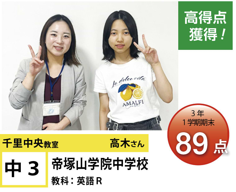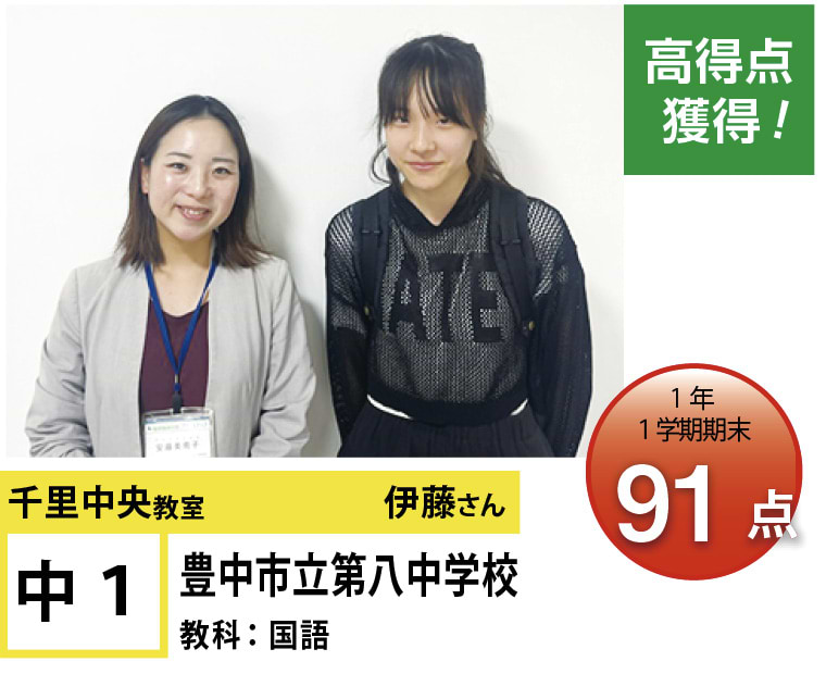 | 在籍生徒 | 小学校・・・北丘小学校、南丘小学校、東丘小学校、新田小学校、大阪教育大学付属池田小学校、関西大学初等部、アサンプション国際小学校など 中学校・・・第九中学校、第八中学校、竹見台中学校、大阪桐蔭中学校、関西大学中等部、関西大倉中学校、金蘭千里中学校、帝塚山学院中学校、大阪女学院中学校など 高校・・・箕面高校、池田高校、北千里高校、桜塚高校、刀根山高校、関西大倉高校、箕面自由学園高校、履正社高校、関西大学高等部、関西大学北陽高校、関西学院千里国際高校など |
