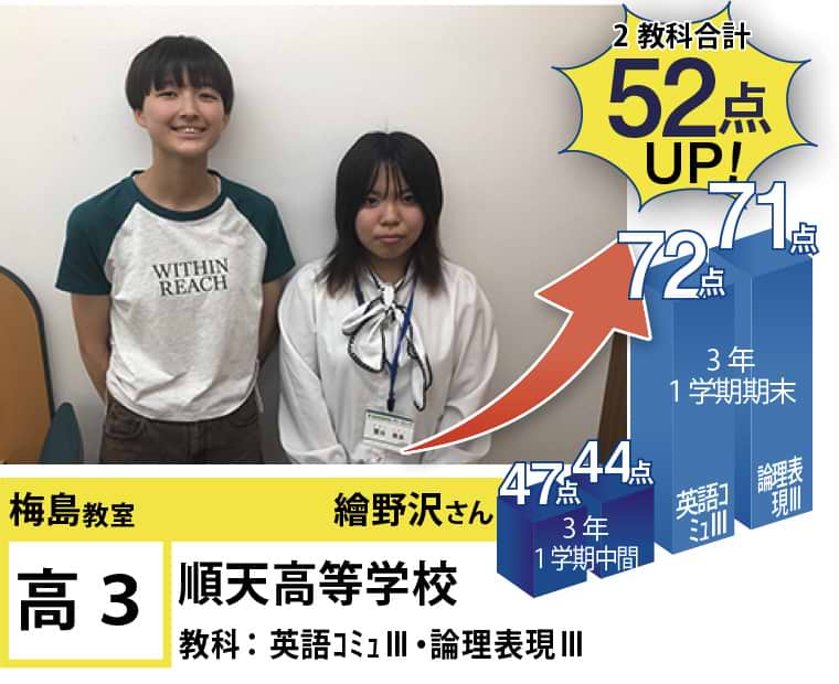 開校からわずか数か月ですが、定期テストの点数アップや模擬試験の偏差値向上を実現し、生徒たちの目標達成に尽力しています。