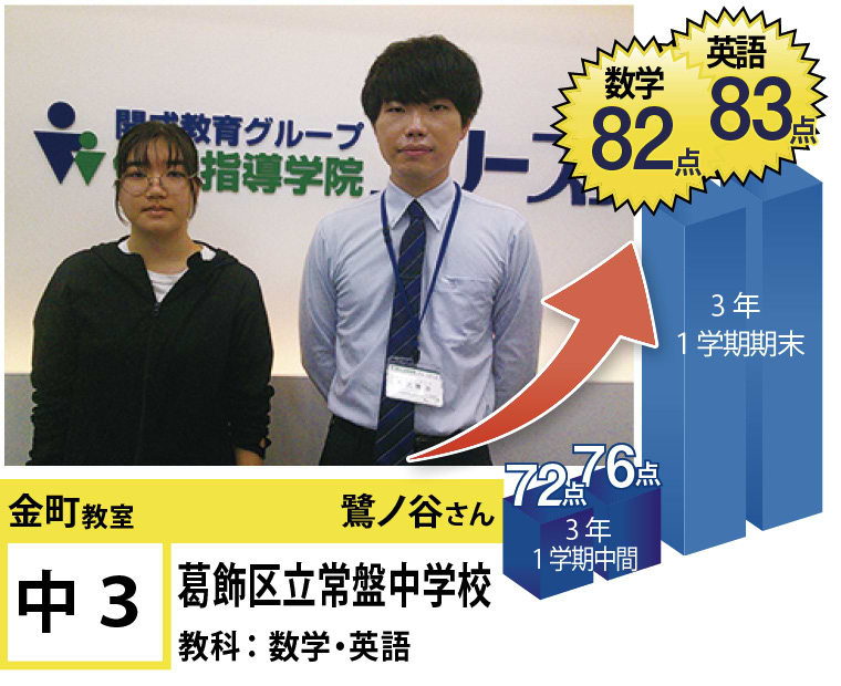 | 在籍生徒 | ■近隣の主な学校 小学校…金町小学校、末広小学校、原田小学校、東金町小学校、柴原小学校など 中学校…常盤中学校、金町中学校、新宿中学校、東金町中学校、桜道中学校など 高校…上野高校、城東高校、江戸川高校、小岩高校、共栄学園高校、修徳高校など |