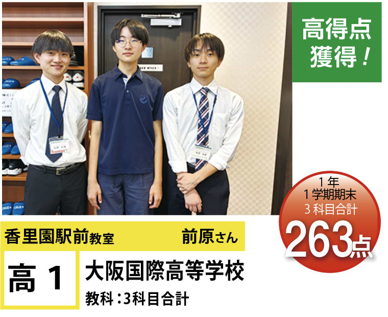 | 在籍生徒 | 小学生・・・香里小学校、東香里小学校、第5小学校、北小学校、追手門学院小学校、香里ヌヴェール学院小学校など 中学生・・・第6中学、第3中学、友呂岐中学、第2中学、第4中学、東香里中学など 高校生・・・寝屋川高校、牧野高校、市立高校、香里丘高校、同志社香里高校、香里ヌヴェール学院高校など |