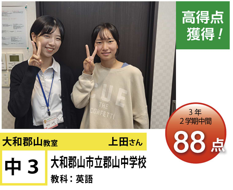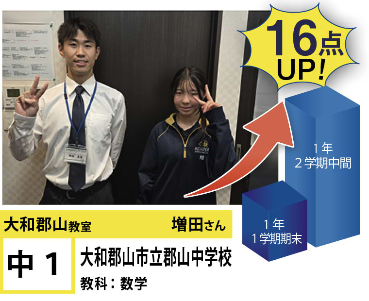 | 在籍生徒 | 小学生・・・郡山西小学校、郡山南小学校、郡山北小学校、平和小学校、近畿大学附属小学校など 中学生・・・郡山中学校、郡山西中学校、郡山東中学校、南中学校、京西中学校、奈良学園中学校など 高校生・・・奈良高校、郡山高校、生駒高校、奈良北高校、一条高校、奈良学園高校など |