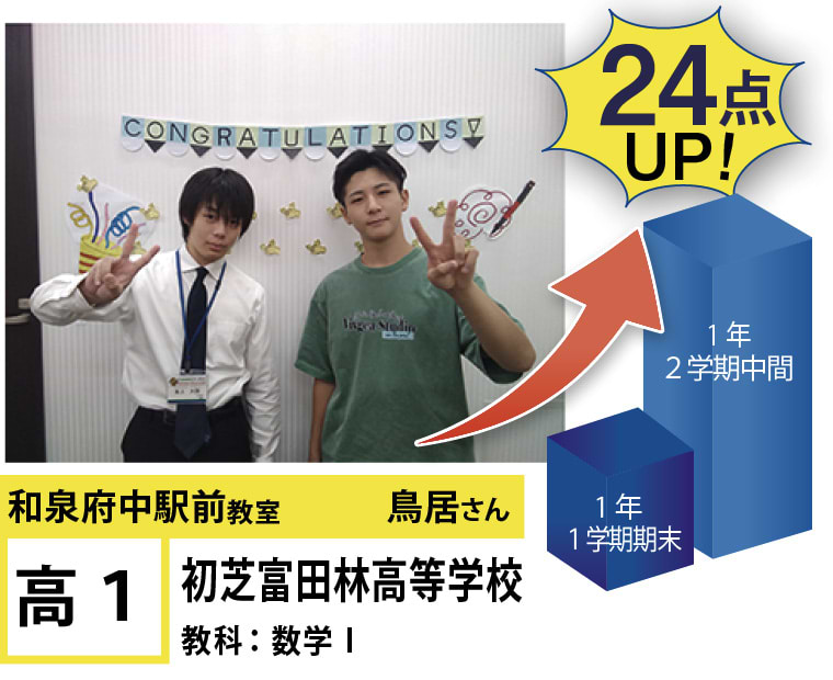 FS和泉府中駅前教室では、成績向上を通じて、地域のお子さま方の志望校合格、夢や希望の実現に向けてともに歩める塾です。学習面を中心とした幅広いサポートをさせていただきます。例えば、一人ひとりに合わせたテストまでのカリキュラムを設定はもちろん、毎回の授業で確認テストを実施し、理解度を授業ごとで正確に把握し、効率的に学習を進められます。JR和泉府中駅に面しており、夜間も明るいため、安心して通塾できる環境となっております。また、定期テスト前は環境の整った自習室で集中して学習することが可能です。講師と目標を授業ごとで確認しながら学習を進めていますので、計画的に目標に向かって勉強し続けられます。