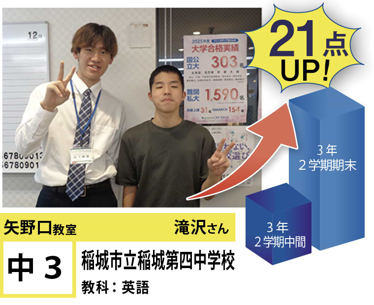 続々と生徒達の点数アップの報告が聞け、努力の成果を実感しています。