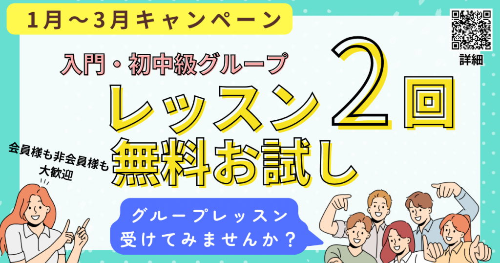 そんなご要望にお応えし、入会前のグループレッスン2回お試しキャンペーンを実施中!