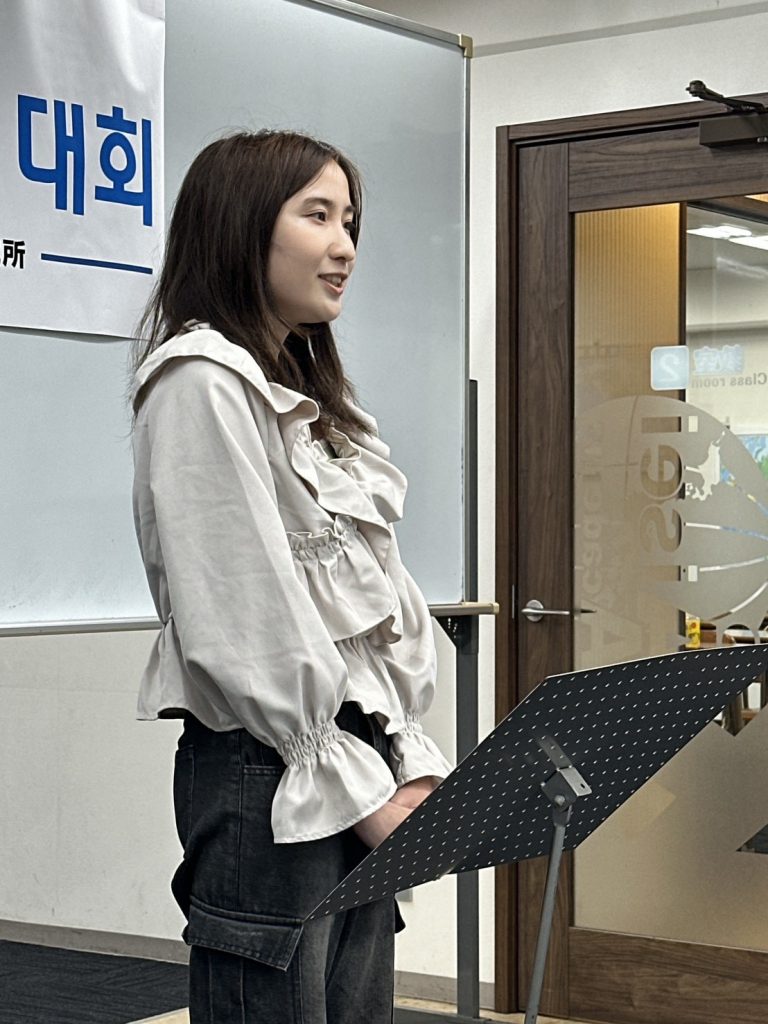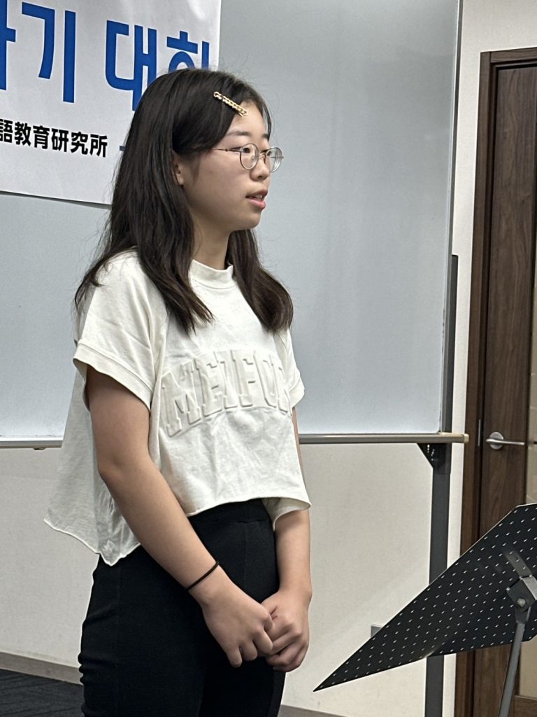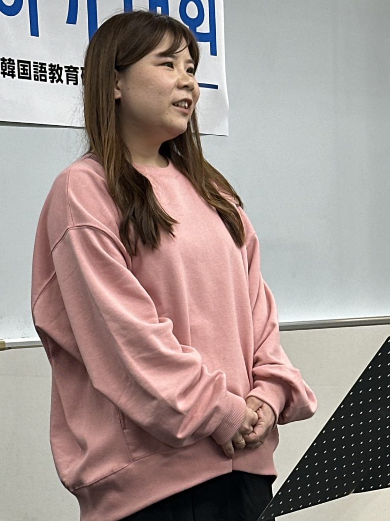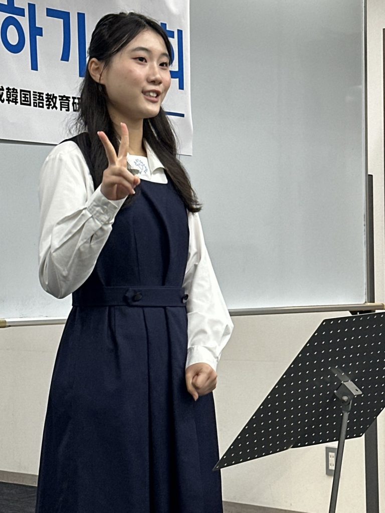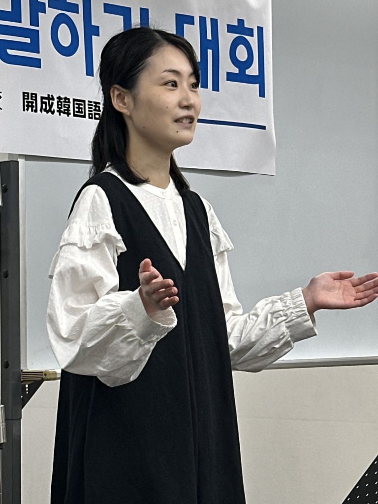 K-POPアイドルや歌手、偉人、日本文化、韓国語など幅広いジャンルについて、皆さんの気持ちを韓国語で発表いただくことで、韓国語学習を今後も頑張りたいという気持ちも併せて伝わってきました。日本語での発表とはまた違った、言葉の選び方や表現が自由作文ならではの良さでしたね。