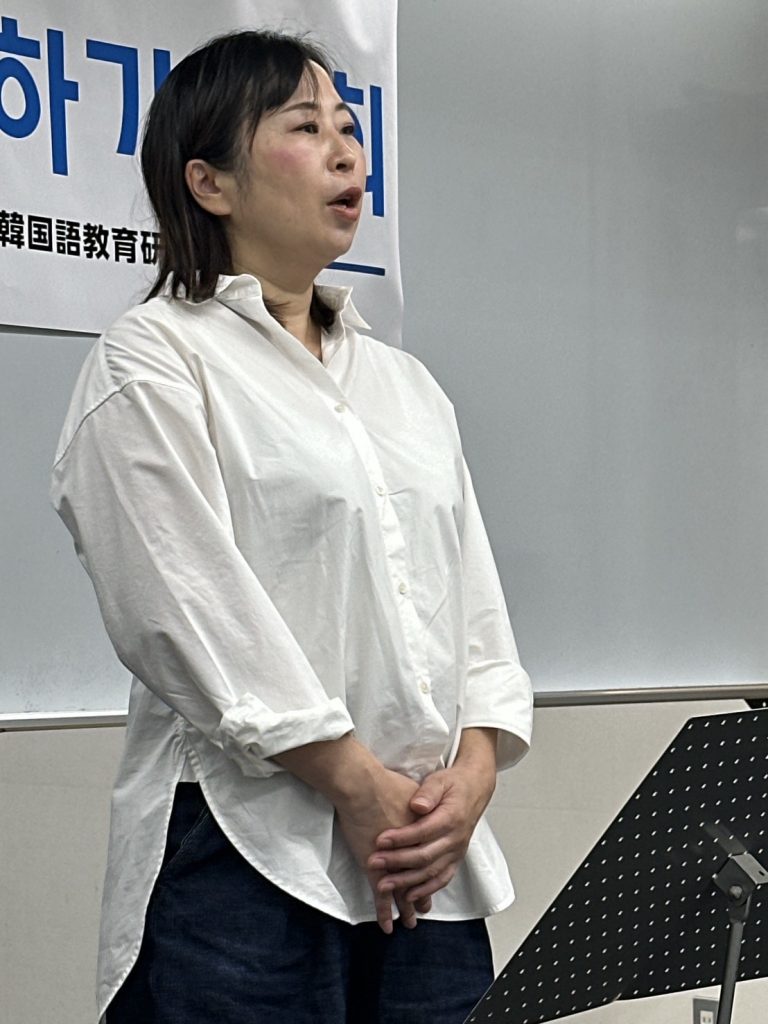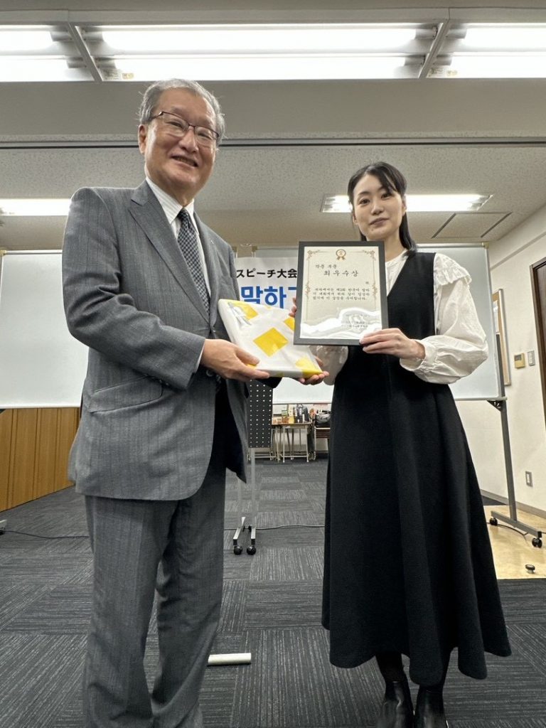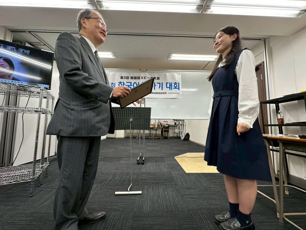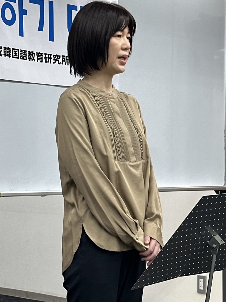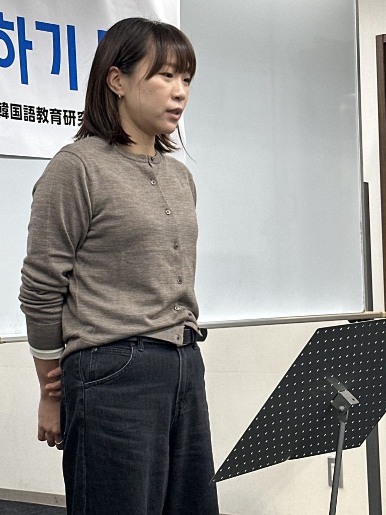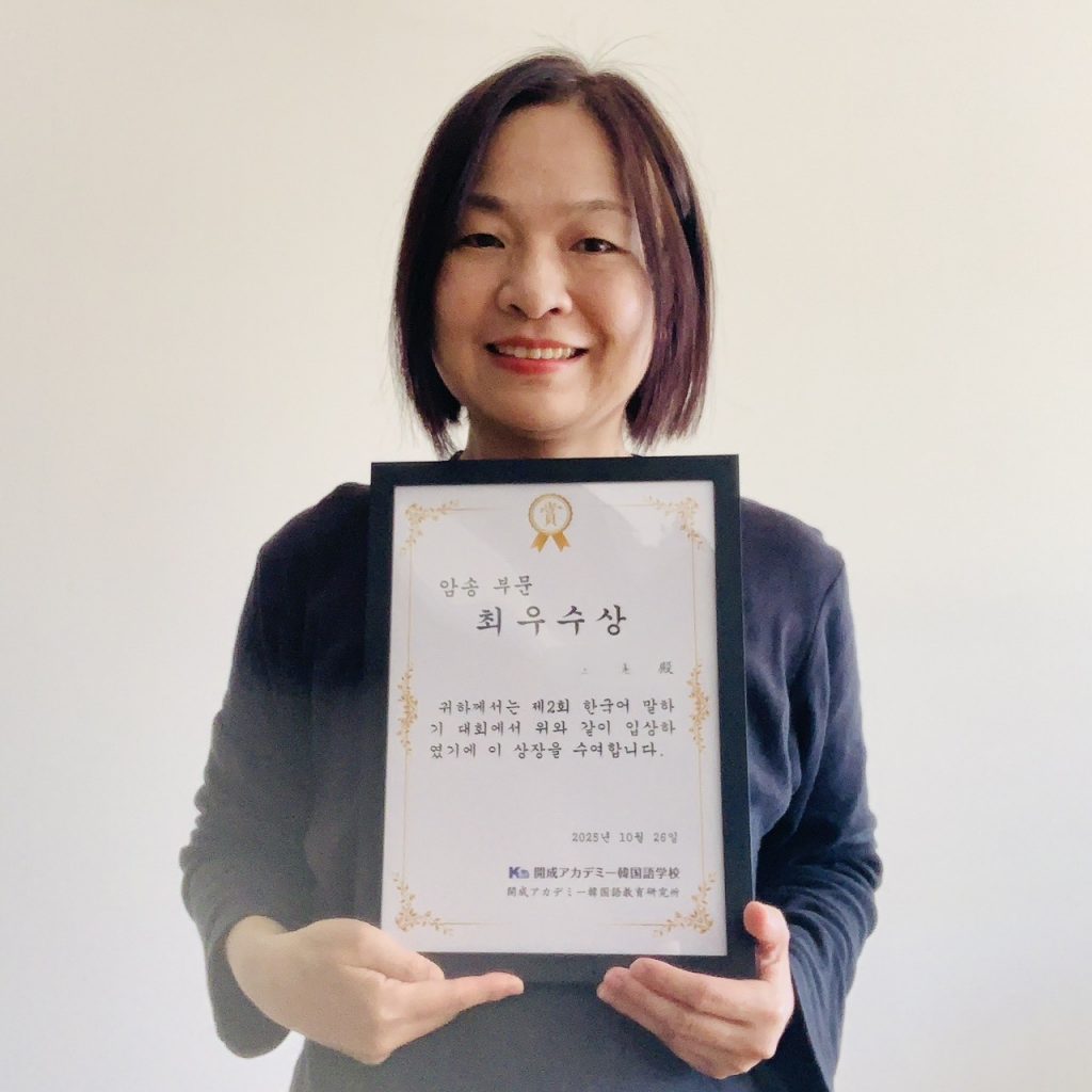 K-POPアイドルや歌手、偉人、日本文化、韓国語など幅広いジャンルについて、皆さんの気持ちを韓国語で発表いただくことで、韓国語学習を今後も頑張りたいという気持ちも併せて伝わってきました。日本語での発表とはまた違った、言葉の選び方や表現が自由作文ならではの良さでしたね。