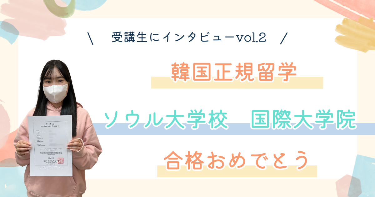 今回はそんなK様に韓国留学を目指されたきっかけや準備、合格発表、現在の状況などを振り返りながら、詳しくインタビューをさせていただきましたので、その様子をお届けします💕