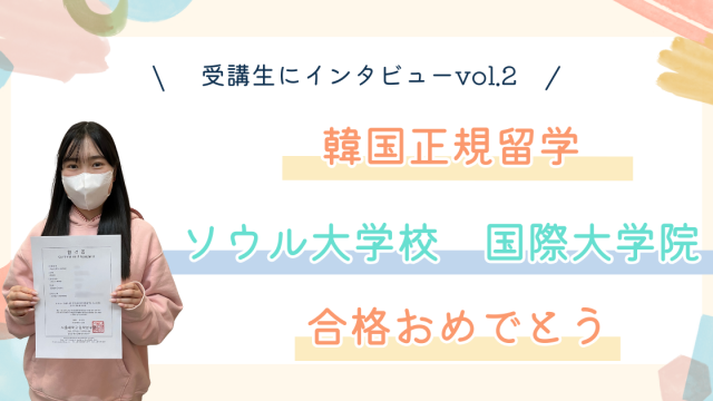 受講生紹介 【祝!留学試験合格】受講生にインタビューvol.2 2026年1月29日 koreanlan-admin https://www.kaisei-group.co.jp/koreanlanguageschool/column/wp-content/uploads/2023/06/logo2-1.png 韓国語コラム|【公式】開成アカデミー韓国語学校