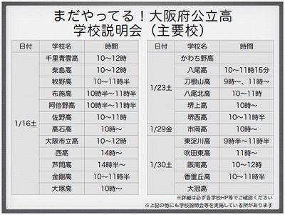 そんな状況を鑑みて、大阪府公立高では年明け以降にも学校説明会等を開催されるケースが増えています。