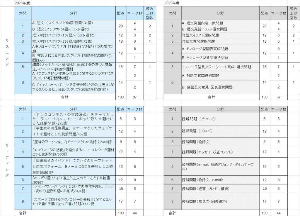 逆にリーディングについてはパターンが固定されてきたので、対策をしていた受験生は易しく感じたようです。登場する単語数は昨年、その前年に比べると2割近く減少しましたが、今年も昨年並みの約5,600語でした。その影響もあって少し平均点が上がるかもしれません。