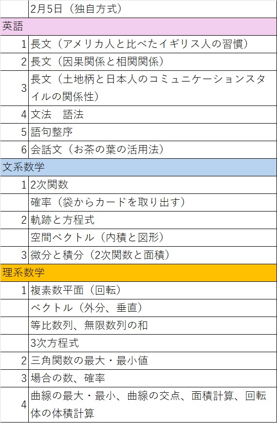 今日は2教科と共通テスト併用の日程なので、試験科目は限られます。共通テストで数学を失敗していても、この方式だと影響がなくなりますので、共通テストは利用価値がありますね。