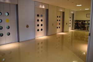 このプールの水は24時間濾過されており、加えて災害時には市民の飲料水に転用することができる濾過装置まで備えています。その横は災害用物資の倉庫となっています。