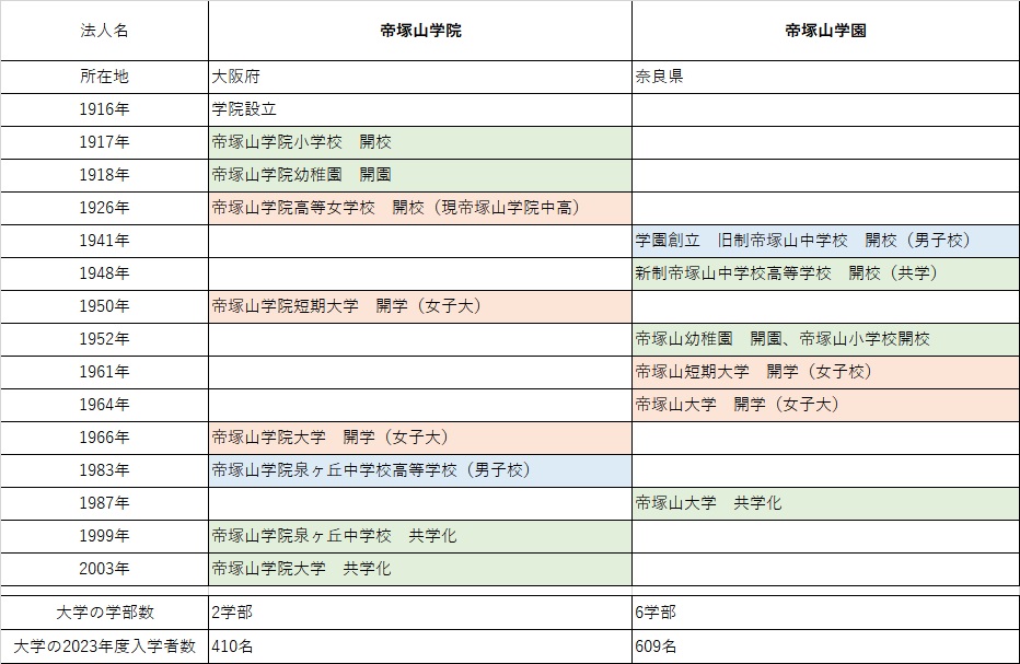 帝塚山学園は奈良県の帝塚山中学校・高等学校や帝塚山大学を運営する法人です。大阪住吉区の帝塚山学院の創立25周年を記念して作られた別法人というわけで、無関係というわけではないのですが、現在では人的な交流も含めてそれぞれ独立した運営が行われています。
