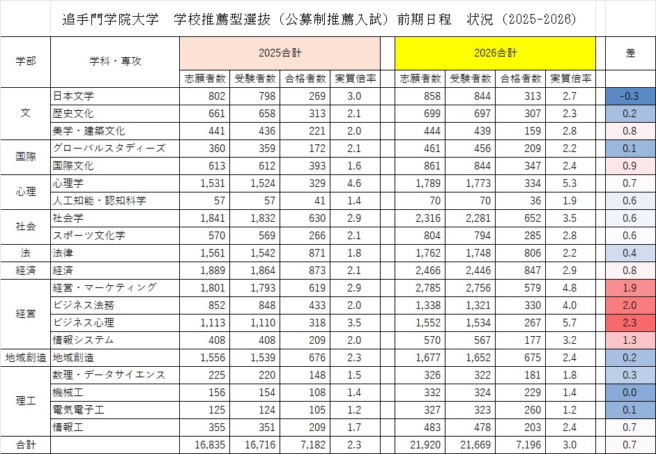 【2026年度 大学入試状況速報】追手門学院大学 学校推薦型(公募制)前期日程【一部で難化?】