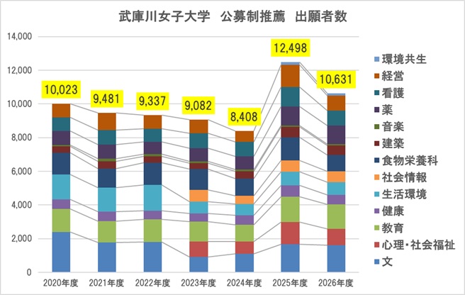 今回が女子だけの募集最後となる武庫川女子大学ですが、公募制推薦の前期と後期の出願者数が明らかになりました。出願数は前期5,717件、後期4,914件、合計で10,631件。さすがはマンモス女子大。去年より減っても1万件超です。「女子大が共学に転換するややこしい時期に志願する女子は減るだろう」などと無責任な予想もありましたが、確かに昨年よりは減ったものの、むしろ2024より1,500件以上増えています。これほど幅広い専門分野を持つ総合大学ですから、受験生としては、女子大だろうが共学だろうが関係ないということでしょうか。
