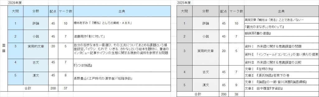 全体の大問数も変化なしです。