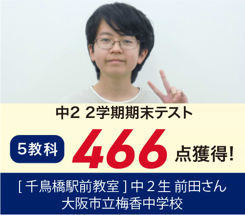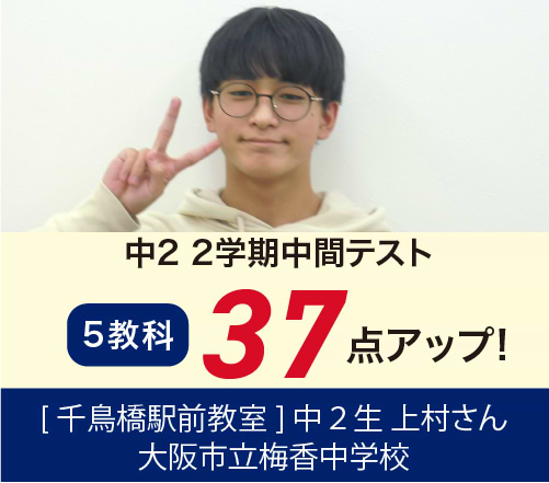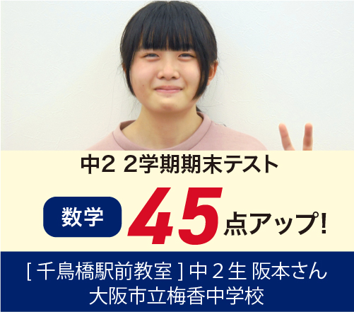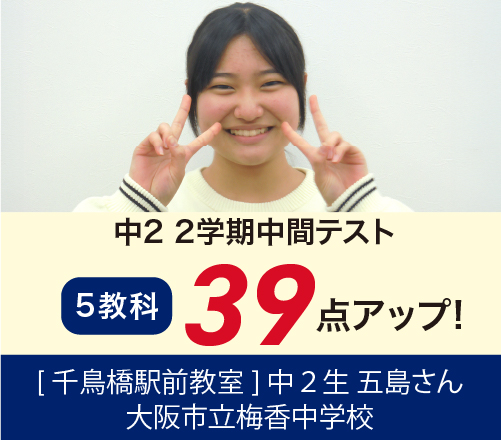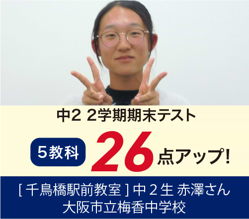 →中2 一学期中間テスト(5科)175 点 up!■大阪市立中学校1年 Hさん