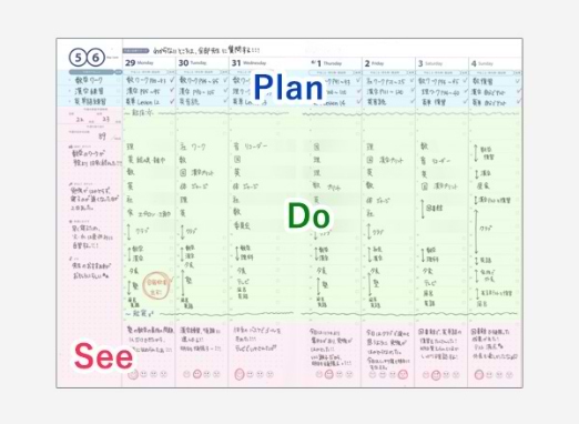開成塾生手帳に、提出物や、やることのリストを記入し、テストまでの学習スケジュールを見える化して管理します。