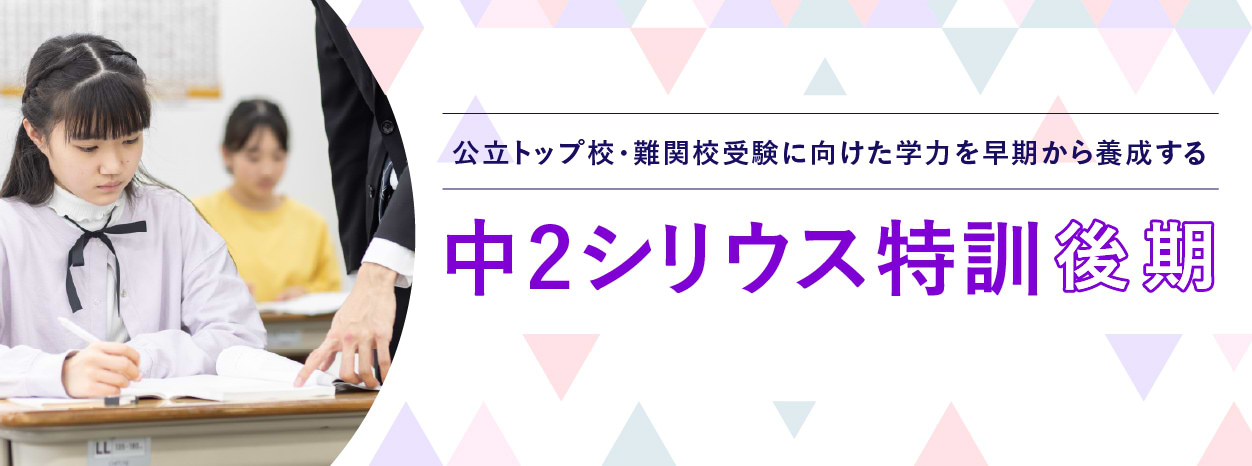 公立トップ校・難関校受験に向けた学力を早期から養成するため、中学2年生を対象とした特設講座「中2シリウス特訓・後期」を開催いたします。