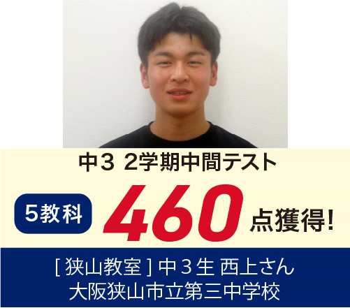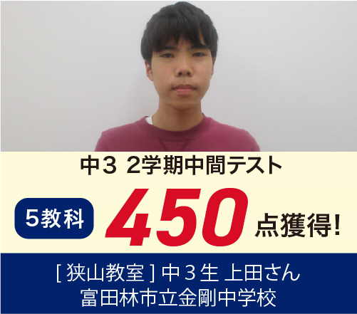 中2 狭山中 5教科85点UP!