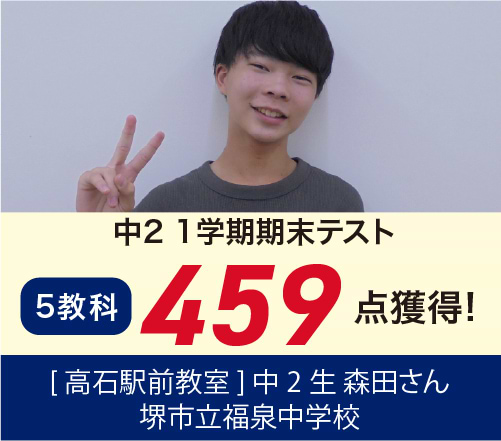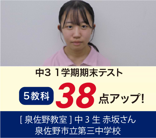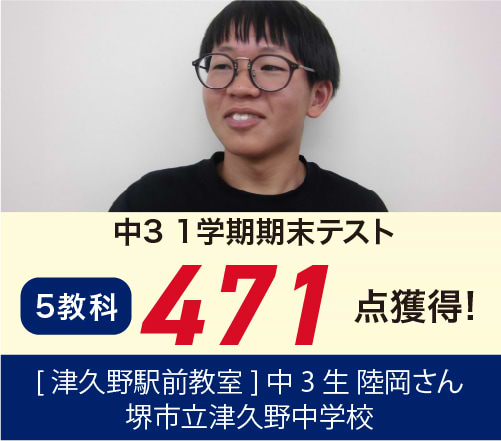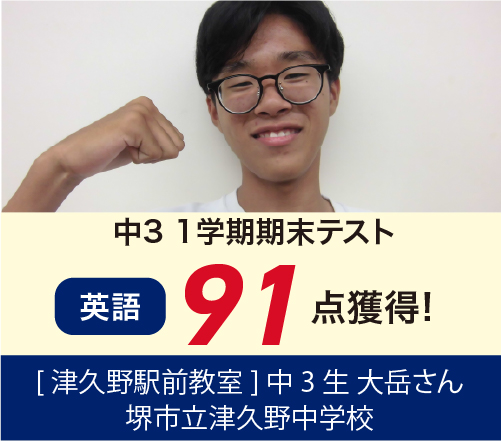定期テストの点数で伸び悩んでいるのであれば、ぜひ一度体験授業にお越しください。中1 【津久野中・浜寺中・鳳中・八田荘中】