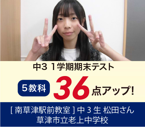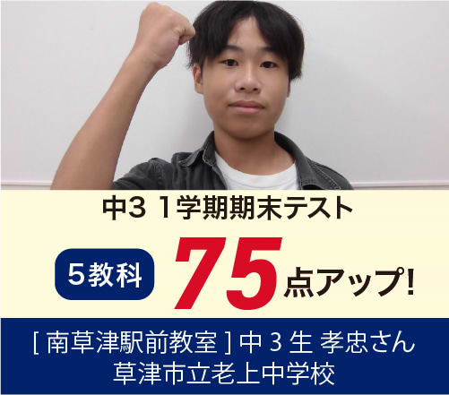 また、実績においても南草津駅前教室より、毎年膳所合格者を10名~15名輩出いたしております。ほとんどの生徒が入塾当初の成績を大きく向上させて膳所合格を掴みとっております。