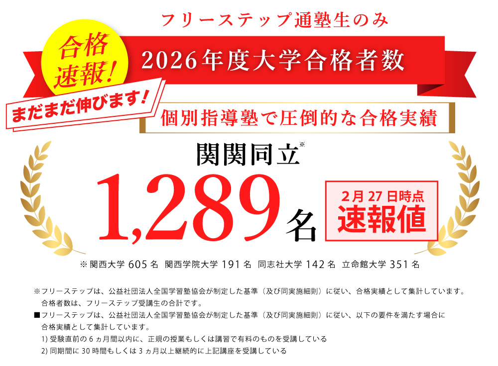 ■フリーステップは、公益社団法人全国学習塾協会が制定した基準(及び同実施細則)に従い、以下の要件を満たす場合に合格実績として集計しています。