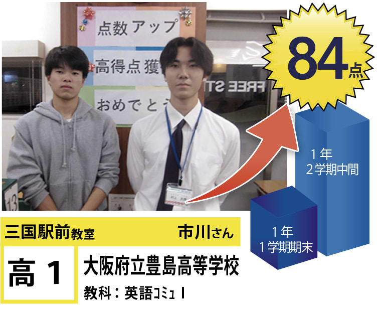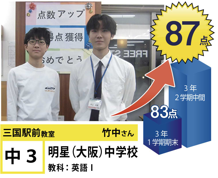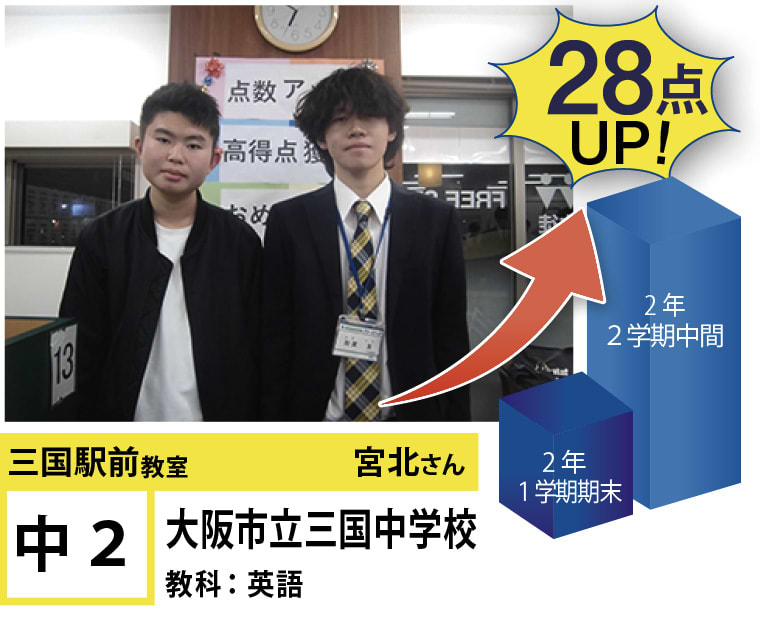 | 在籍生徒 | 小学校・・・新高小学校、三国小学校、宮原小学校、東三国小学校、野中小学校、千成小学校など 中学校・・・三国中学校、十三中学校、宮原中学校、咲くやこの花中学校、美津島中学校、梅花中学校など 高校・・・豊中高等学校、池田高等学校、春日丘高等学校、利根山高等学校、関西大学北陽学校、大阪学院高校など |
