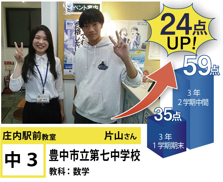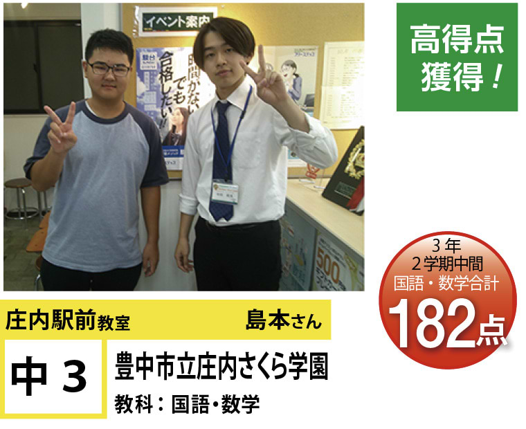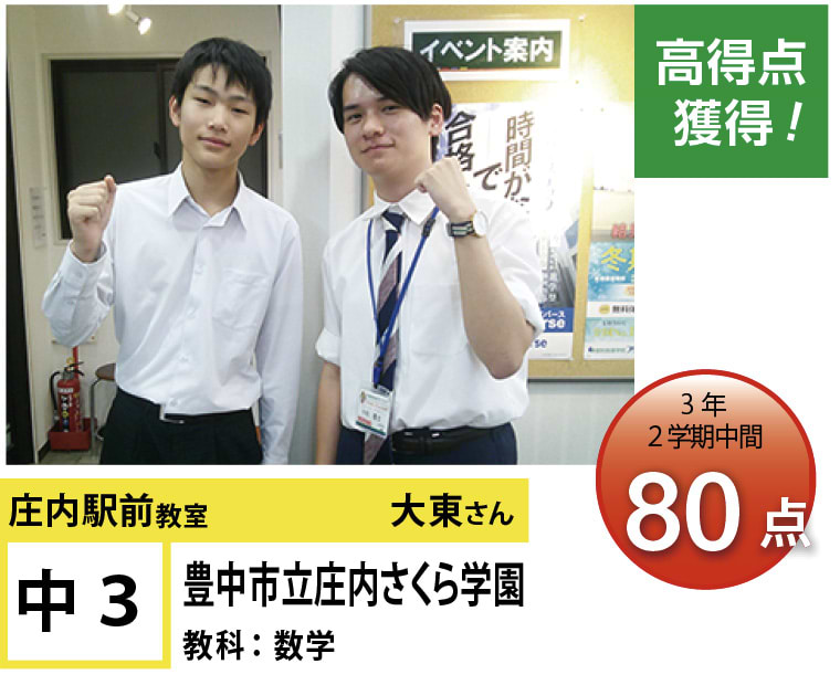 苦手分野の克服、受験指導、学習方法など、今後の学習計画などでご相談・ご要望のある方がいらっしゃいましたら、お気軽に庄内駅前教室までお問い合わせください。思い立ったときに素早く行動に移し、効率のよい学習を行うことで目標達成は実現します!一緒に頑張りましょう!