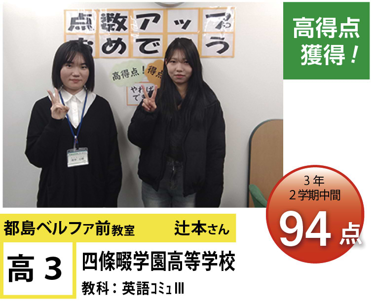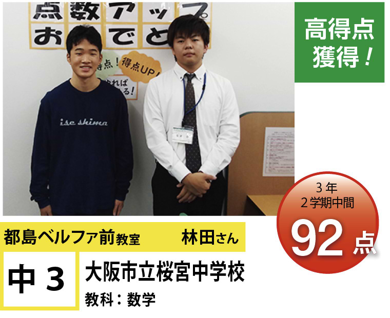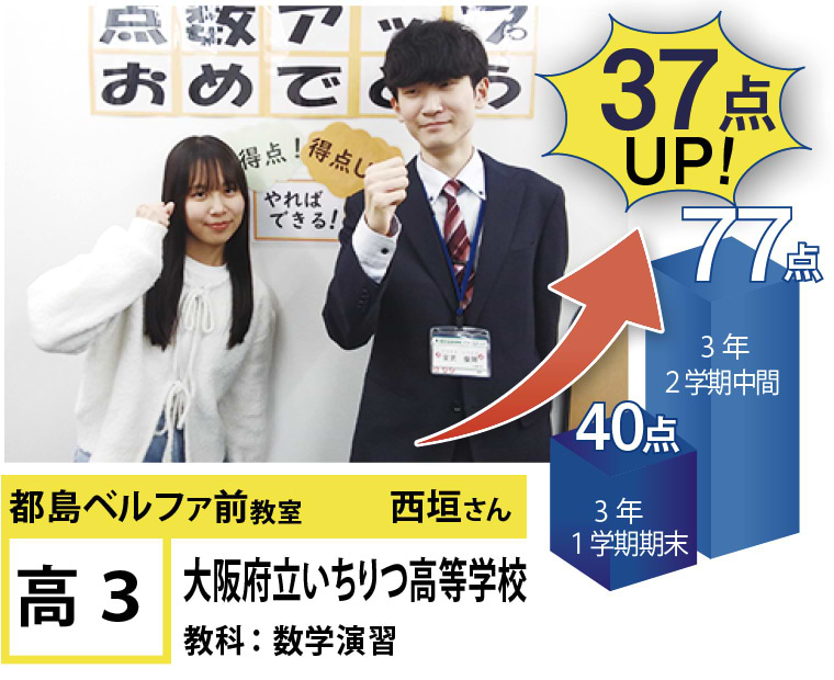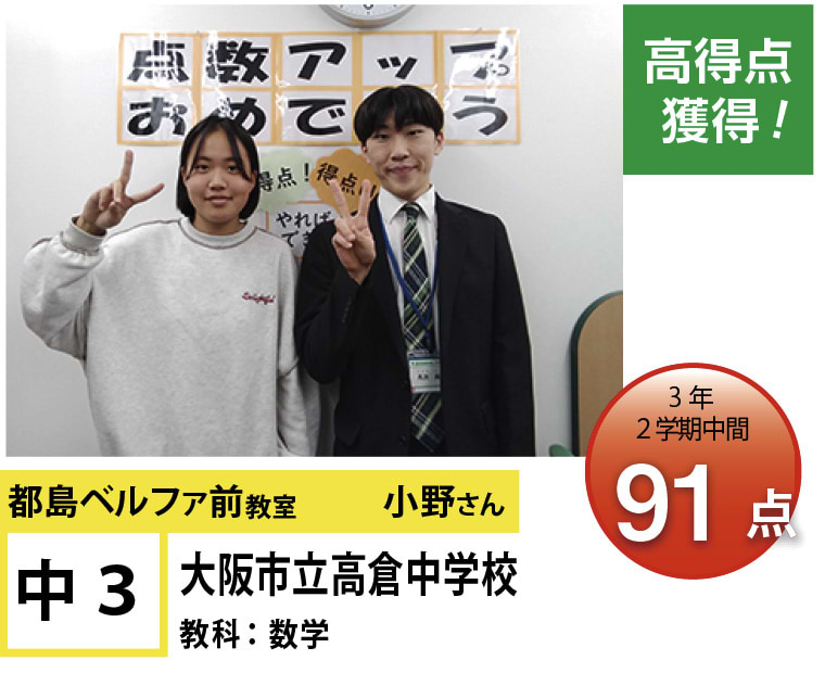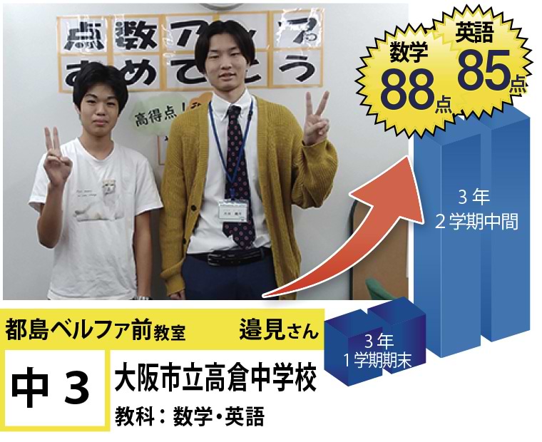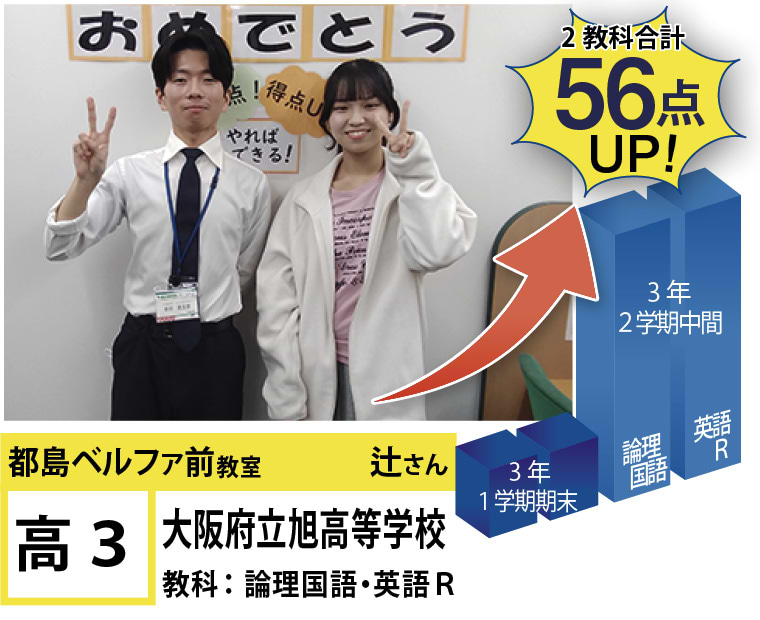 | 在籍生徒 | 小学校・・・高倉小学校、友渕小学校、東都島小学校、高殿小学校など 中学校・・・友渕中学生、高倉中学校、旭陽中学校、大阪信愛学院中学校、水都国際中学校、咲くやこの花中学校など 高校・・・四條畷高校、寝屋川高校、東高校、旭高校、常翔学園高校、近畿大学付属高校など |
