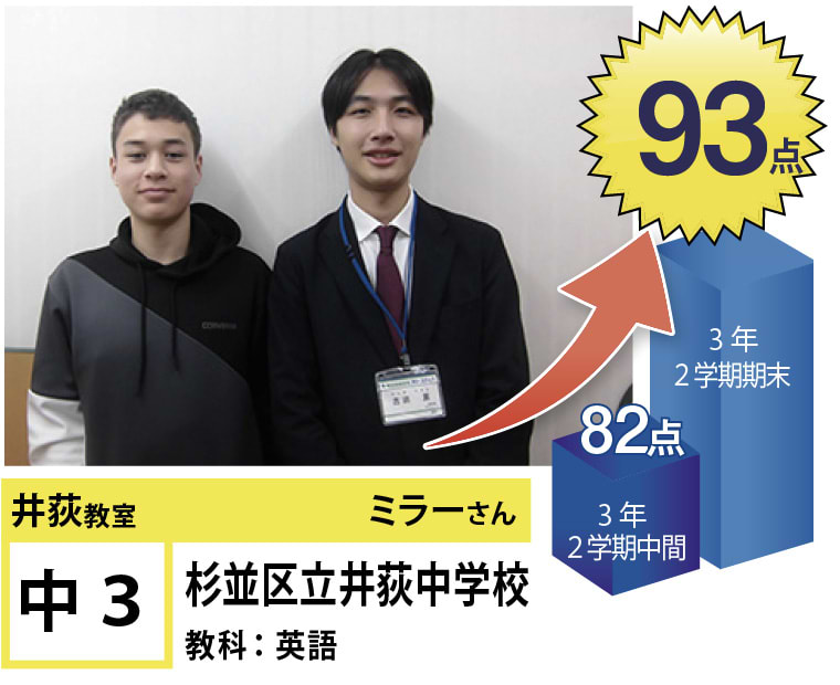 | 在籍生徒 | 小学校・・・桃井第五小学校、南が丘小学校、八成小学校 など 中学校・・・石神井南中学校、井草中学校、南が丘中学校、中瀬中学校、光塩女子学院中等科 など 高校・・・井草高等学校、杉並高等学校 、 武蔵丘高等学校、 鷺宮高等学校 など |