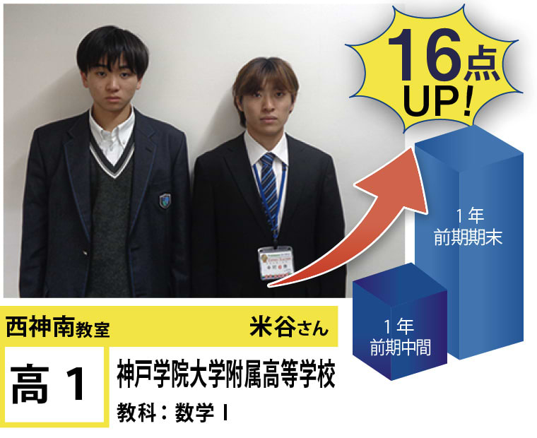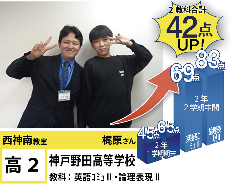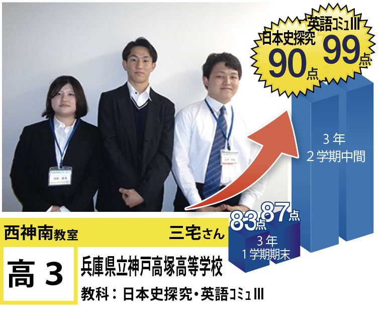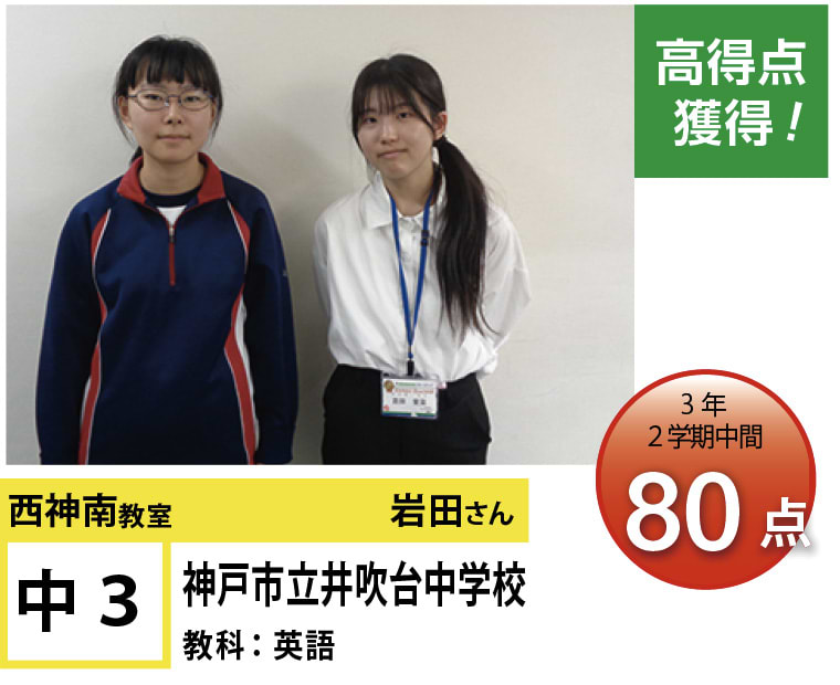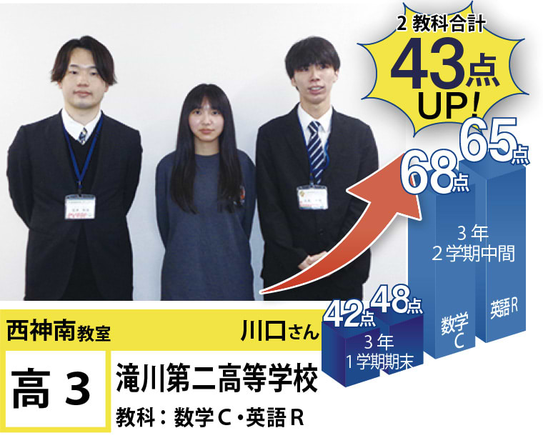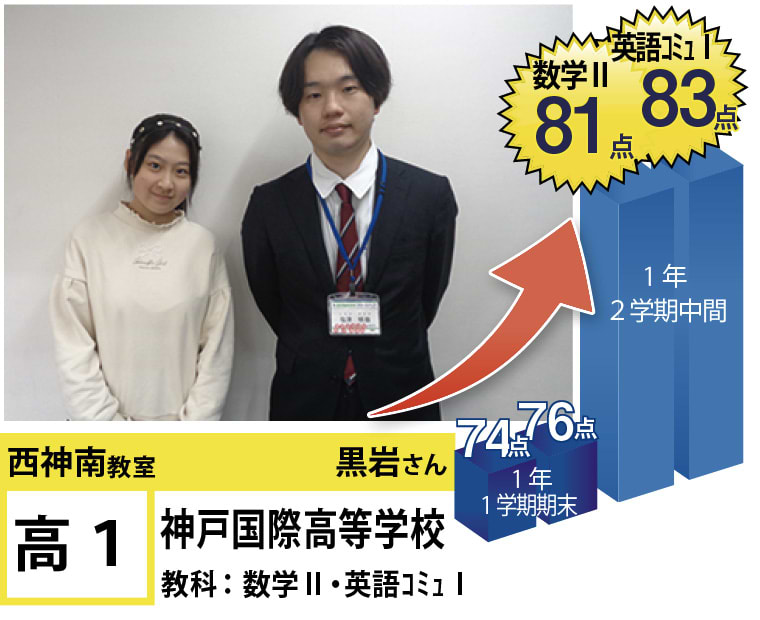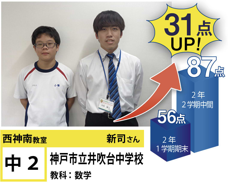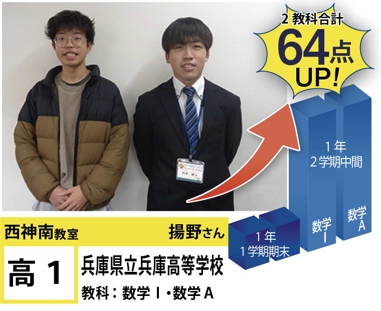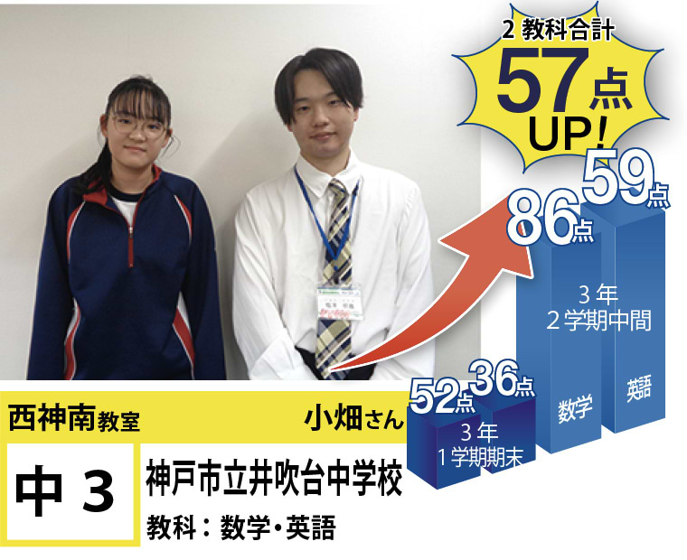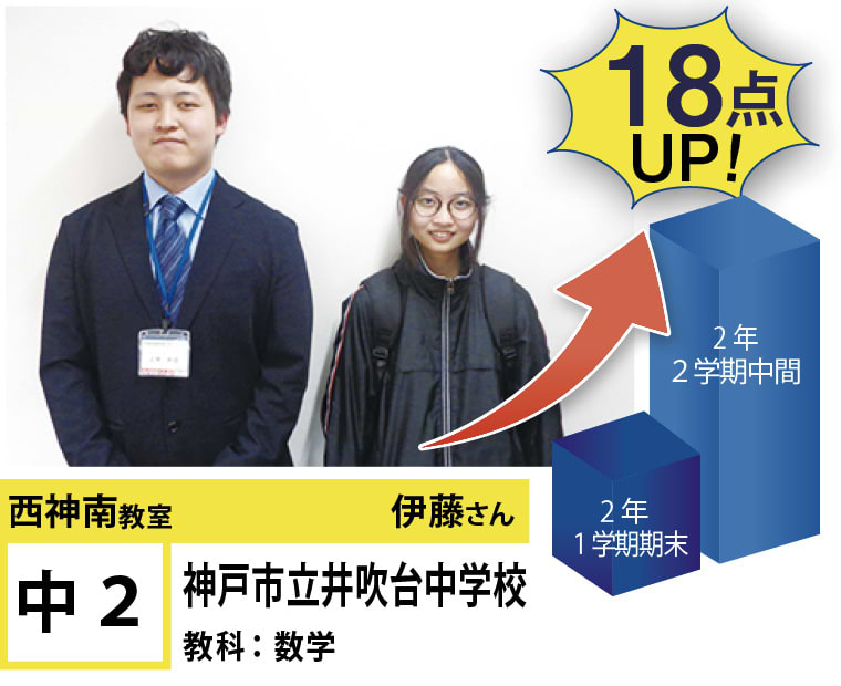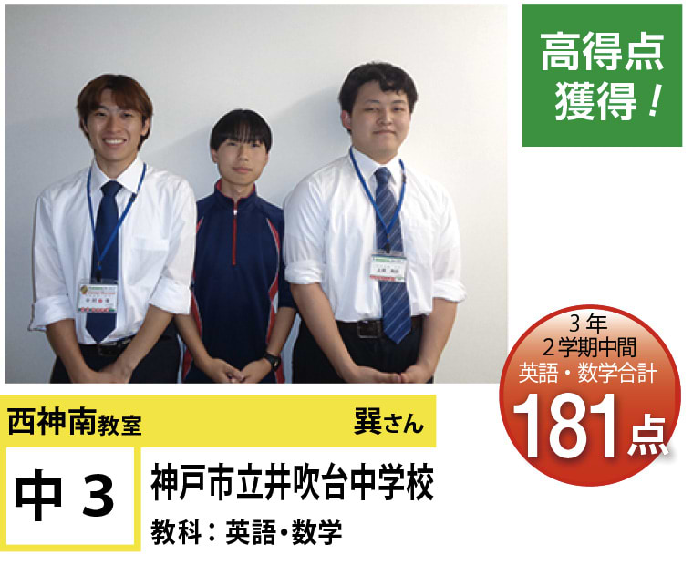 | 在籍生徒 | 小学校・・・井吹の丘小学校、井吹西小学校、井吹東小学校など 中学校・・・井吹台中学校、櫨谷中学校、大山寺中学校、甲陽学院中学校、滝川第二中学校、甲南女子中学校など 高校・・・星陵高校、友が丘高校、舞子高校、須磨翔風高校、神戸学院大学附属高等学校、神戸国際高等学校など |