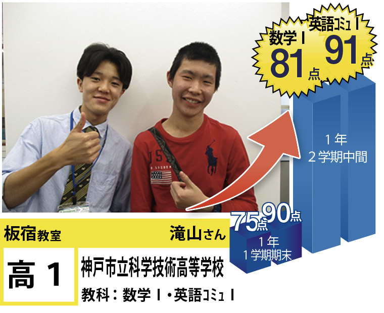 | 在籍生徒 | 小学校・・・板宿小学校、東須磨小学校、北須磨小学校、長田南小学校など 中学校・・・吉田中学校、飛松中学校、太田中学校、鷹取中学校、西代中学校、横尾中学校など 高校・・・須磨友が丘高等学校、神戸学園都市高等学校、兵庫高等学校、須磨友が丘高等学校、科学技術高等学校、甲南女子高等学校など |