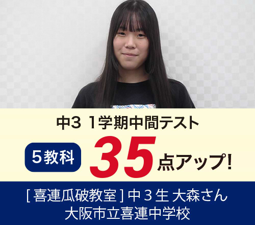 喜連瓜破に開校して7年目となりましたが、毎年、全員が阪南高校以上の公立学校へ進学し、第一志望校合格を果たしています。